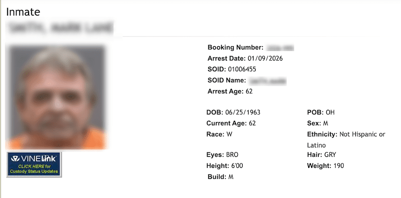 - Arrest Information: Age when arrested, arrest date, arrest location, arrest status, arresting agency and jurisdiction, booking date and time, booking number, mugshot, etc.